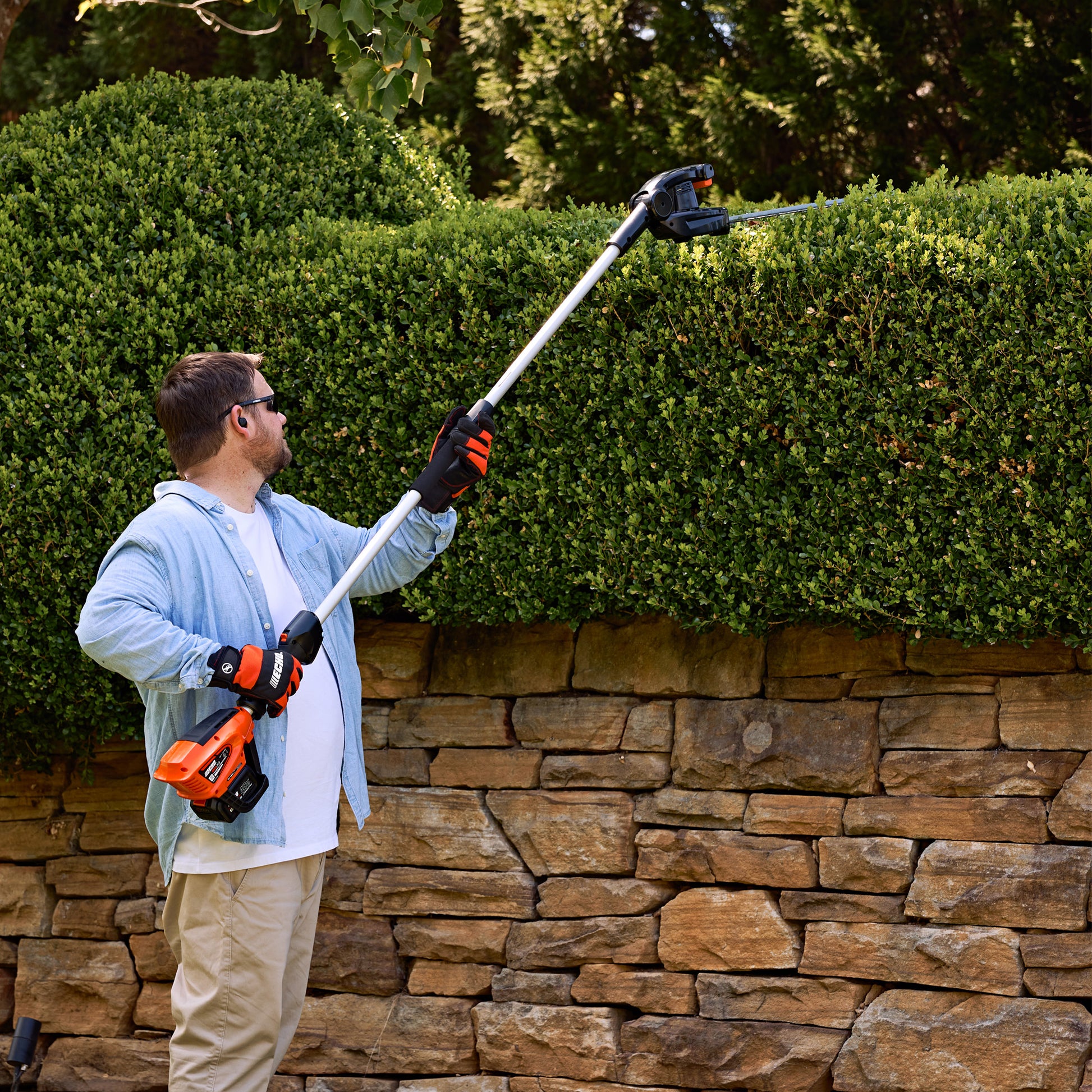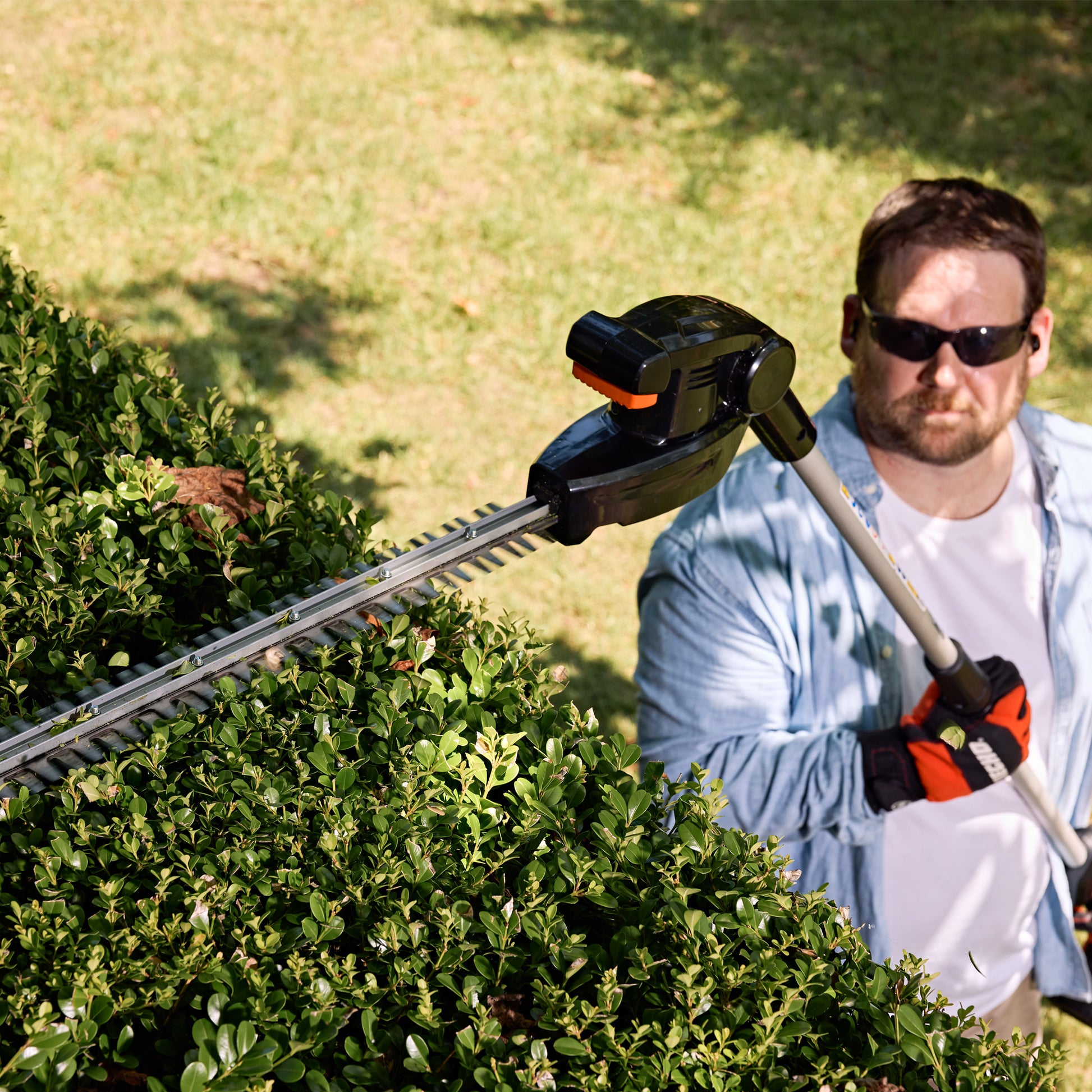With a total length of 246cm and an articulating blade, you can tackle tall and large hedges with minimal effort. Capable of cleaning up thick shrubs or fine sculpting of your hedges.